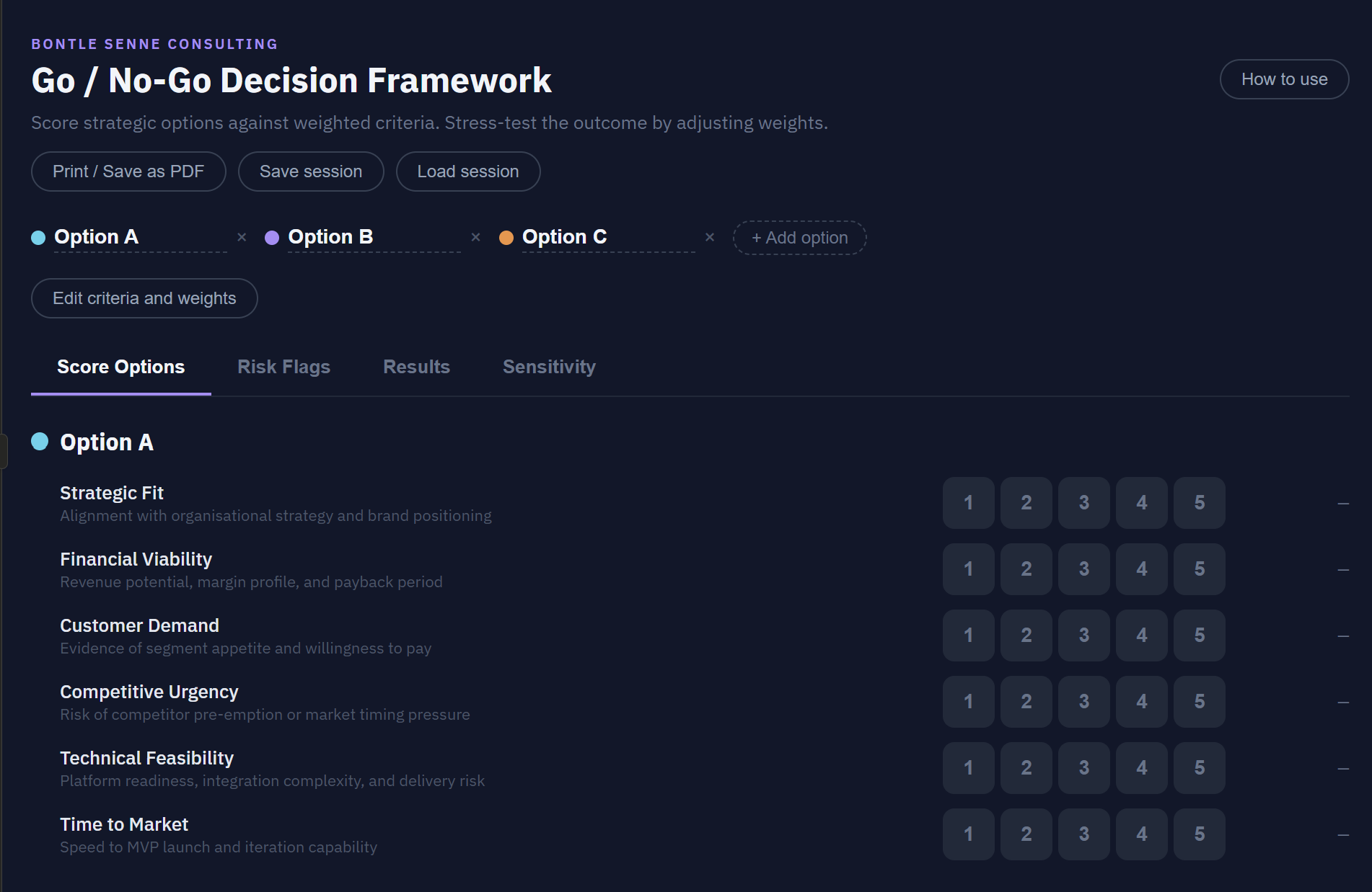 • Score strategic options against weighted criteria your leadership team agrees on